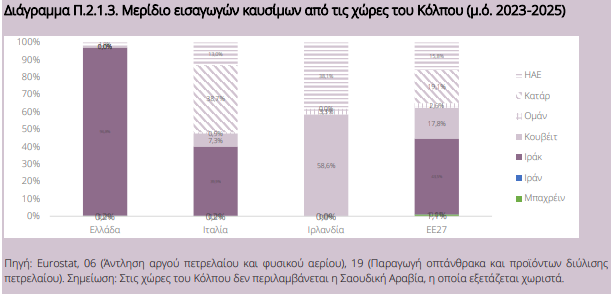 Κι αυτό διότι περίπου το 25% των ελληνικών εισαγωγών καυσίμων προέρχεται από χώρες του Κόλπου, αναδεικνύοντας τη σημασία της σταθερότητας της περιοχής για την εγχώρια αγορά ενέργειας.