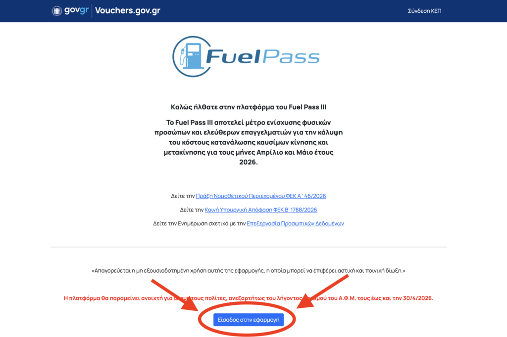 Χωρίς την παραπάνω διαδικασία δεν επιτρέπει η πλατφόρμα vouchers.gov.gr να ολοκληρώσει κάποιος την αίτηση για να λάβει το Fuel Pass. Κατά συνέπεια, θα πρέπει οι ιδιοκτήτες των Ι.Χ. αυτοκινήτων ή μοτοσυκλετών να καταχωρήσουν υποχρεωτικά τα στοιχεία επικοινωνίας τους στο Εθνικό Μητρώο Επικοινωνίας για να είναι διαθέσιμα στις ηλεκτρονικές συναλλαγές σας με το δημόσιο.