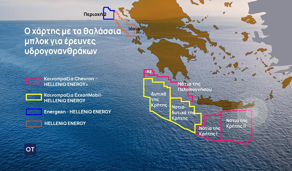 Στη χώρα μας , τον ερχόμενο Οκτώβριο πιθανότατα αναμένεται να ξεκινήσουν οι σεισμικές έρευνες της κοινοπραξίας Chevron – HELLENiQ ENERGY στα τέσσερα θαλάσσια blocks, τα οποία έχουν παραχωρηθεί με συμβάσεις: «Α2», «Νότια της Πελοποννήσου», «Νότια Κρήτη I» και «Νότια Κρήτη II».