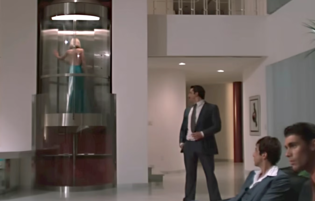 Σκηνή από την ταινία Scarface με την Μισέλ Φάιφερ να κατεβαίνει στο γυάλινο ασανσέρ