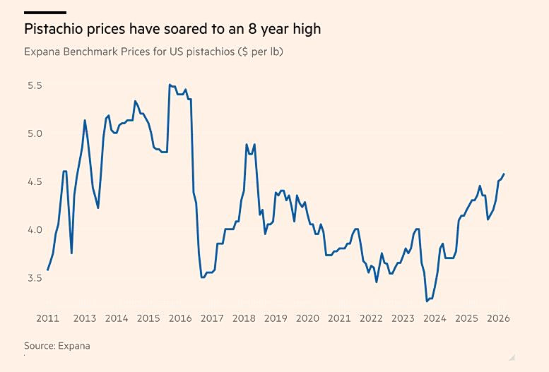 Σύμφωνα με την Expana, οι τιμές του φιστικιού ανέβηκαν στα 4,57 δολάρια περίπου ανά λίβρα τον Μάρτιο, το υψηλότερο επίπεδο από το 2018. Η ζήτηση τροφοδοτήθηκε εν μέρει από την παγκόσμια μόδα της «σοκολάτας Ντουμπάι», που συνέβαλε στην ευρύτερη άνθηση της ζήτησης προϊόντων με γεύση φιστικιού.