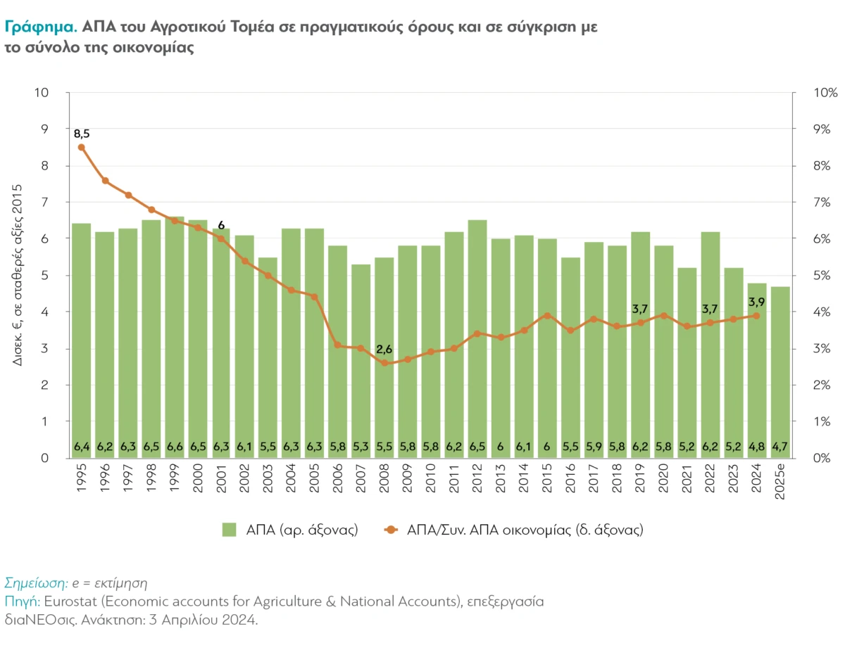 Σε κρίσιμο σημείο βρίσκεται σήμερα ο αγροτικός τομέας στην Ελλάδα. Από τη μία πλευρά, εξακολουθεί να έχει σημαντικό οικονομικό και κοινωνικό αποτύπωμα. Εξασφαλίζει επάρκεια τροφίμων για τη χώρα και συμβάλλει στην απασχόληση, στις εξαγωγές και στην τροφοδοσία μιας σειράς κλάδων, από τη μεταποίηση έως τον τουρισμό.