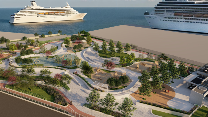 Το υπό κατασκευή Πάρκο εντός της λιμενικής ζώνης στην περιοχή της κρουαζιέρας, θα αποτελεί έναν ανοιχτό, ασφαλή και πλήρως προσβάσιμο χώρο αναψυχής και άθλησης για όλους τους πολίτες,