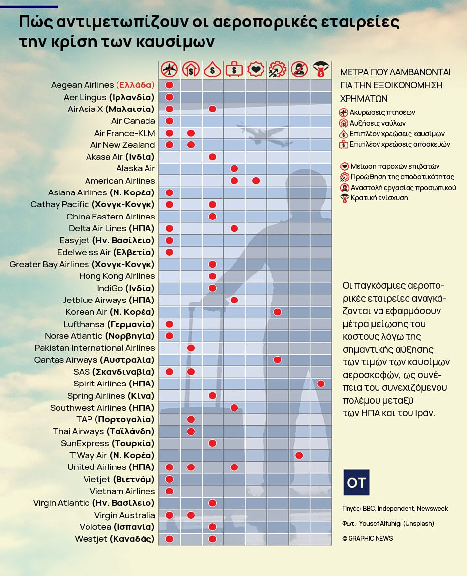 Οι επιπτώσεις της έλλειψης καυσίμων για αεροσκάφη λόγω του κλεισίματος των Στενών του Ορμούζ αρχίζουν να γίνονται αισθητές για τις μεγάλες αεροπορικές εταιρείες.