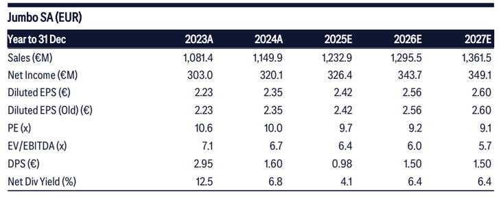 Μικτή εικόνα αποτυπώνουν τα οικονομικά αποτελέσματα της Jumbo για τη χρήση 2025, σύμφωνα με την ανάλυση της Citi, η οποία επισημαίνει οριακή υστέρηση στην κερδοφορία και διατήρηση συντηρητικών εκτιμήσεων για το 2026.