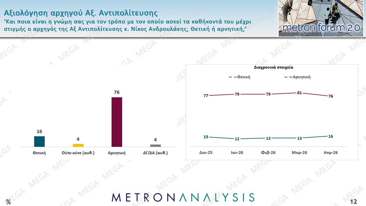 Σε πείσμα της προσπάθειας της κυβέρνησης να πείσει ότι διατηρεί τον έλεγχο των πολιτικών εξελίξεων, η δημοσκόπηση της Metron Analysis, που παρουσιάστηκε στο βραδινό δελτίο του MEGA την Τετάρτη 29 Απριλίου, δείχνει ότι η Νέα Δημοκρατία ήδη πληρώνει ακριβό δημοσκοπικό τίμημα τόσο για την κατάσταση της οικονομίας όσο και για τη θεσμική κρίση στην οποία έχουν οδηγήσει οι αλλεπάλληλες αποκαλύψεις για σκάνδαλα με πρωταγωνιστές «γαλάζιους» βουλευτές και υπουργούς.